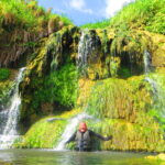 沖縄特有の石灰岩を滝を目指して進むトレッキングツアー!